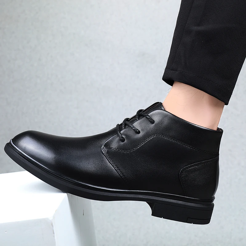 Cow Leather boots men size 37-46 Comfortable warm 2019 Non-Slip Handmade winter shoes #SGM6025