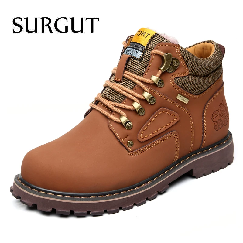 SURGUT Winter New Men Ankle Boots Motorcycle Fur Plush Warm Classic Fashion Snow Boot Autumn Men Ca