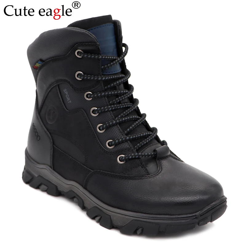 Boys Winter Boots kid's Waterproof Natural Leather Snowshoe Warm Plush Rubber Snow Boots for Sports