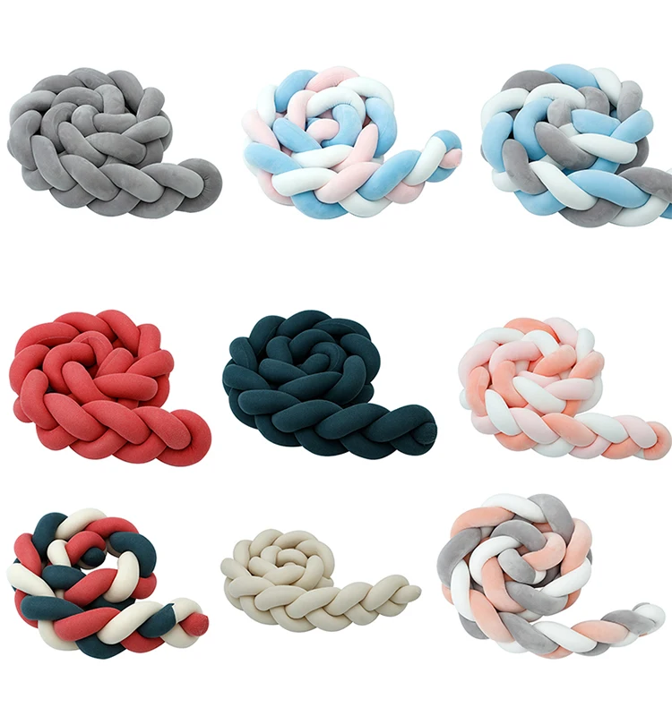 Crib Sides Bumper 3M Long Baby Bed Knot Protector Handmade Braid Plush Baby Bed Fence Bumper Infant