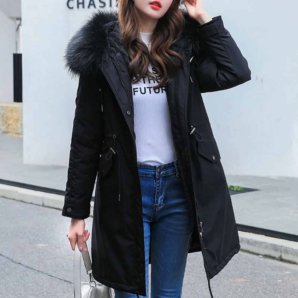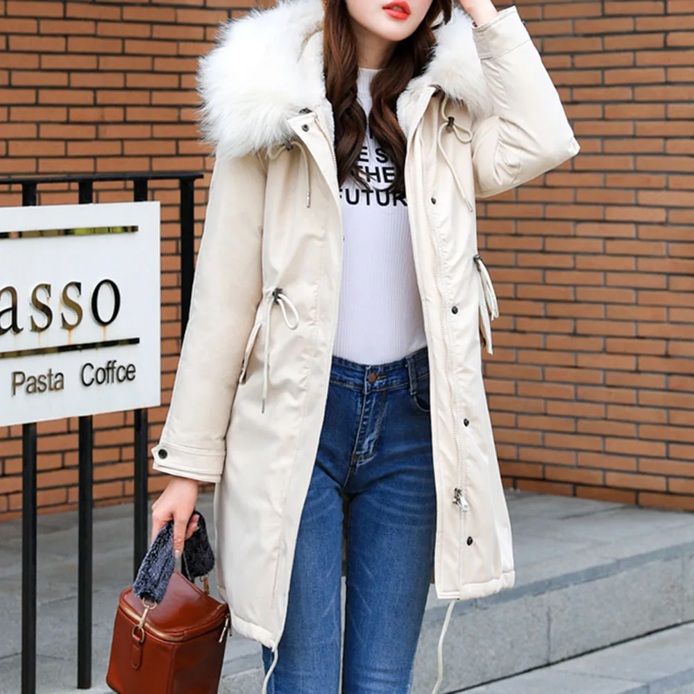 BEST Winter Cotton Padded Jacket Women Fashion White Black Basic Warmness Plush Fur Parka Pink Jackets H