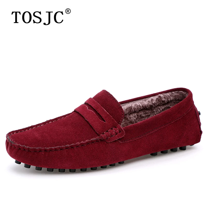 Review Top TOSJC New Winter Man Penny Loafers Slip-on Short Plush Boat Shoes Suede Breathable Man Flats Moccas
