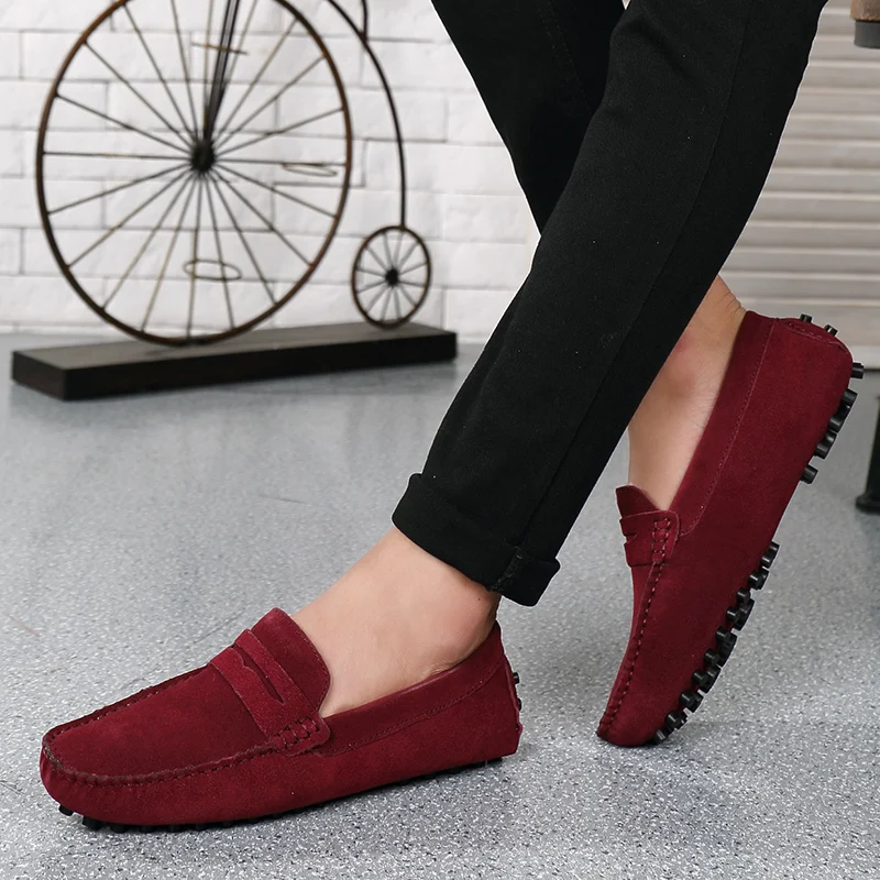 TOSJC New Winter Man Penny Loafers Slip-on Short Plush Boat Shoes Suede Breathable Man Flats Moccas