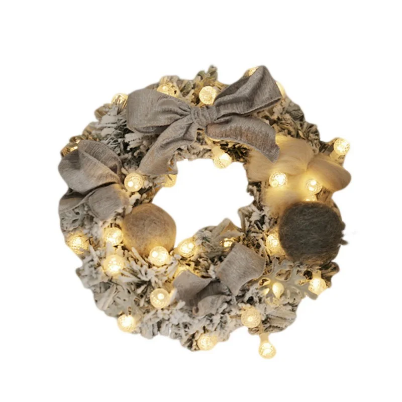 1PC Christmas Wreath With LED String Light Bowknot And Plush Balls Decorated Garland For Front Door