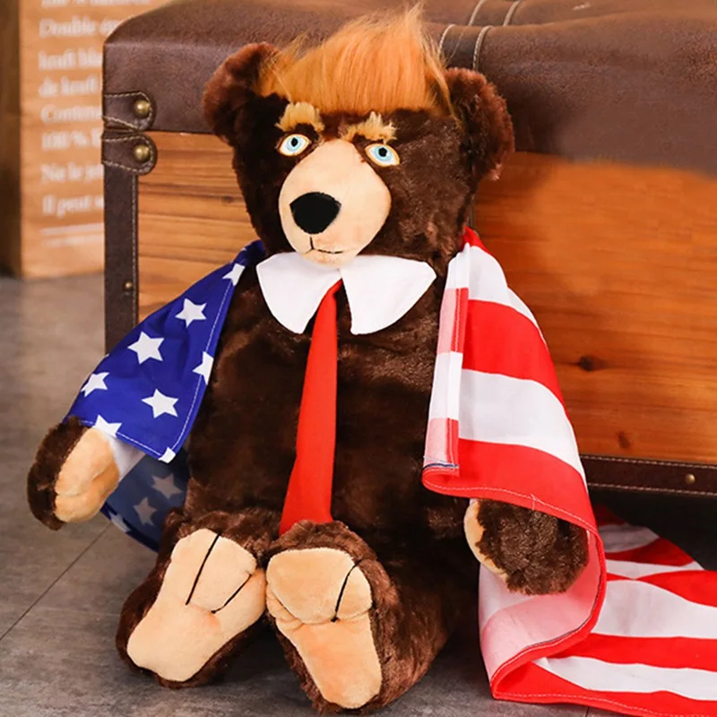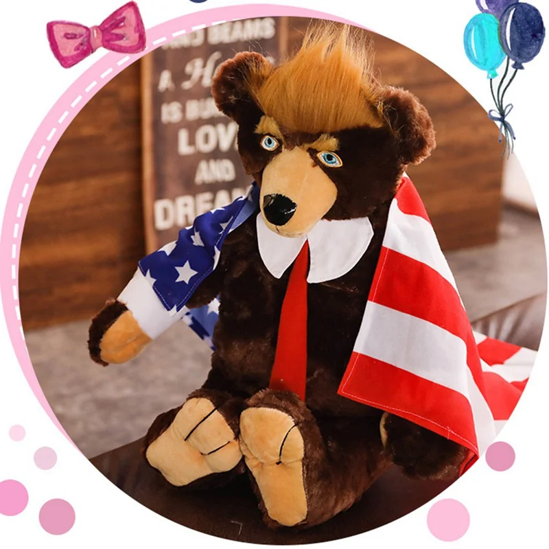 2019 New 60cm Trump Plush Stuffed Toy Bear Plush Toys Cool USA President Bear With Flag Cute Animal